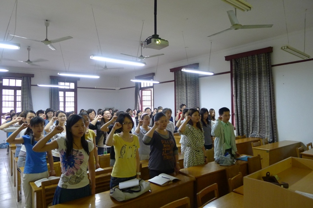 | "一个党员,一面旗帜" 我院举行毕业生党员文明离校活动 6月15日上午,我院全体毕业生党员在1号教学楼201教室,开展了毕业离校前的最后一次支部活动,活动内容有三个方面:重温入党誓词;观看师德教育影片《凤凰琴》;进行"一个党员,一面旗帜"文明离校承诺。会议由党总支书记陈建琴主持。 面对党旗,毕业生党员庄严宣誓,将终身牢记自己的庄严誓言,时刻用誓言来激励自己,以实际行动履行自己的庄严誓言,随时准备为党和人民的利益牺牲一切。 《凤凰琴》影片让党员同学了解了山区教师的艰辛生活和无私奉献的精神,主人公的那份热忱和乡村教育的落后触动着每个人的灵魂。这份精神食粮将引导同学们在"践行师德,办人民满意的教育"活动中创先争优,做一名优秀的人民教师。 最后,党员同学承诺:"一个党员,一面旗帜,一份责任",在学校的最后时间里,大家将继续保持良好的精神状态,模范带头地遵章守纪,爱护公务,讲究卫生,文明离校,为我系毕业工作的顺利进行做出自己的贡献。 外国语学院   |
