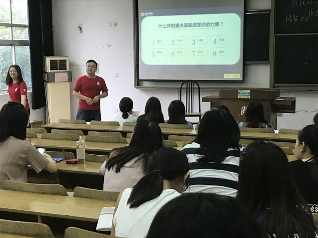 9月6日下午,外国语学院在紫金校区综合楼113举行2019届英语专业普本班毕业生就业宣讲会,邀请励步少儿英语、空中英语、南京拉力郎教育咨询有限公司三家机构来校进行现场宣讲。该院院长、党总支书记张莉及学工办、教学办老师全程参会。