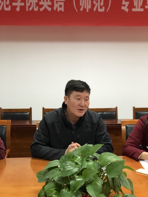 潘文介绍了我校的办学特色和人才培养理念。他说,结合教学一线需求和师范生的人才培养特点,我校在师资队伍建设、课程设置、职前职后融通及师范生乡村定向培养上实施了有效举措,且已取得较为显著的办学成果。他指出,我校外国语学院英语专业人才培养注重实践教学,以职前职后一体化卓越英语教师培养为特色,提升了专业内涵建设水平。