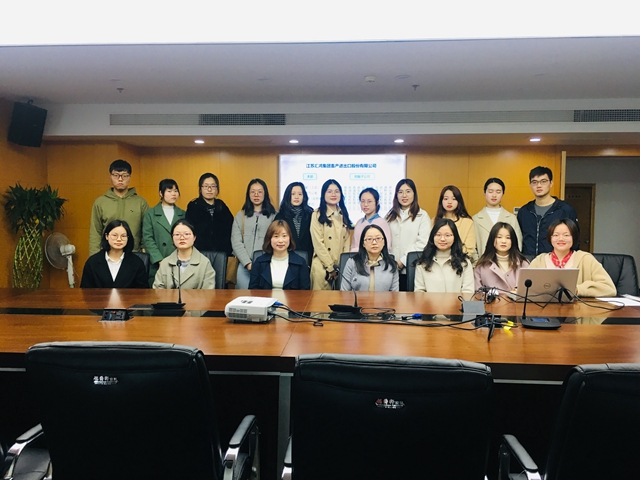3月25日上午,我院学工处主任王倩和商务英语教师廖文萌带领15级英语非师范专业15名优秀学生,赴江苏汇鸿国际集团畜产进出口股份有限公司开展实习工作。该公司根据学生所长分配了相应的实习岗位。目前,这15名实习学生均已到岗。