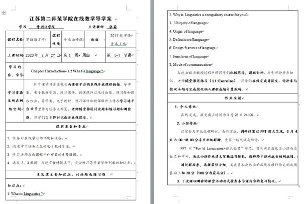 第二阶段是备课试课阶段。建课期间,老师们积极搜集电子版教材、撰写了教学导学案、教案、课前预习文档、速课、授课视频,并将这些材料提前上传至课程的各个章节中。院长张莉以自己的课程为例,在学院工作群中分享了所任课程的班级通知、导学案,并精心为学生制作了在线学习操作方法,为我院教师和学生提供了很好的指导。