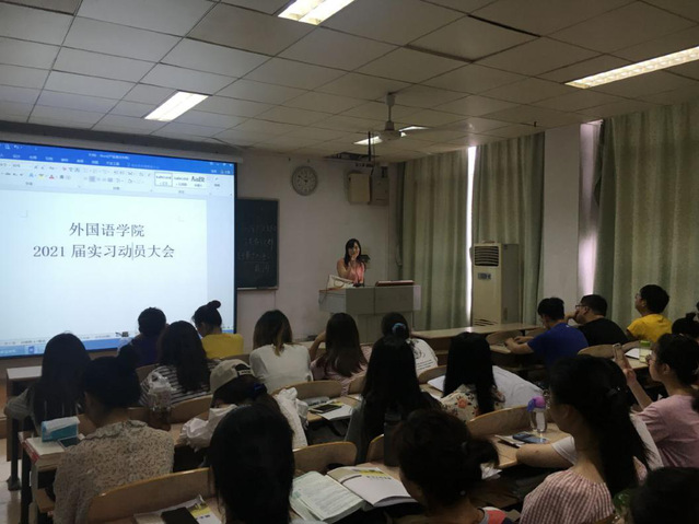 9月9日,学院在草场门校区教2-304教室召开实习动员大会,会议由副院长梁婧玉主持,英语(师范)专业负责人郭大光、教务员何丽娜参会。郭大光强调了实习工作的重要意义,向学生提出四点要求:实习期间增加安全意识;对指导老师要虚心求教;遵守实习学校纪律,为人师表,以身作则;要善于观察总结,切实提高自己的教学能力。梁婧玉为同学们介绍了专业实习的具体要求以及学生需完成的任务,并围绕学生存在的困惑与问题进行了现场解答。