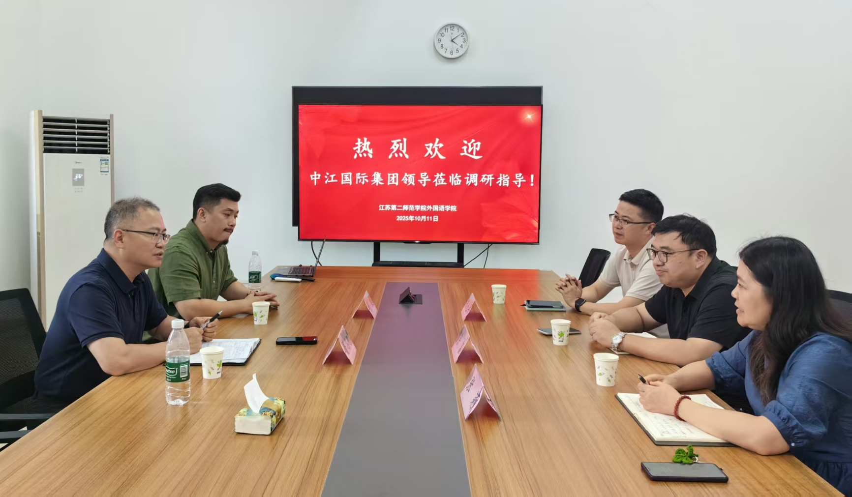 10月11日,江苏中江国际人才发展有限公司邮轮船员管理中心主任屠小刚、招聘经理冯湜一行莅临江苏第二师范学院外国语学院开展调研交流。我院党总支书记余鑫、院长张莉和副院长陈光兵热情接待了调研团队,双方围绕深化校企合作、精准对接人才需求等议题展开深入座谈,为后续合作落地奠定坚实基础。