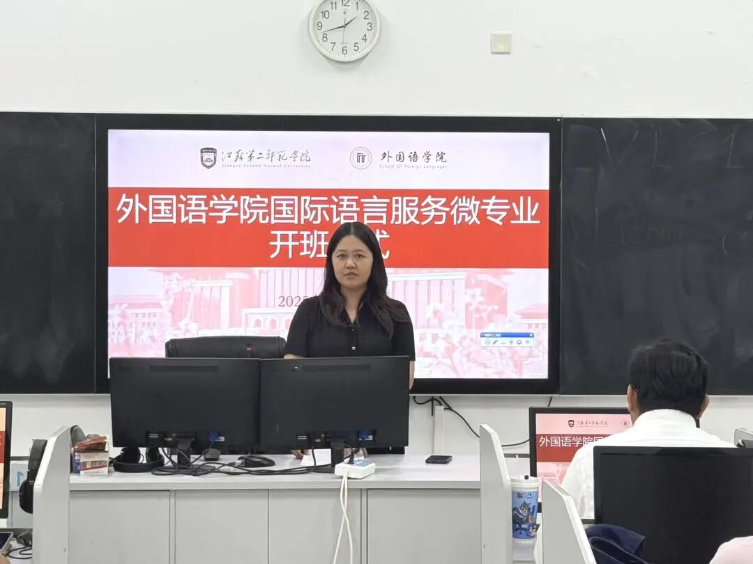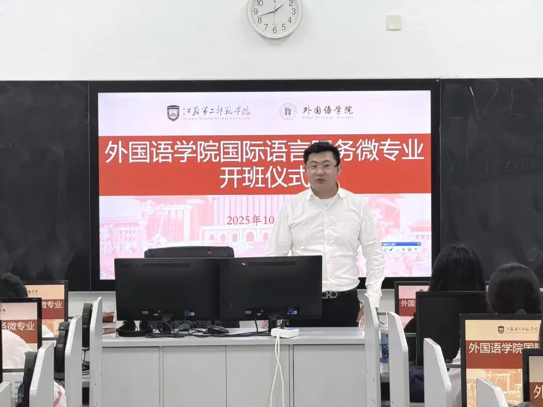 本次国际语言服务微专业开班仪式不仅是我院在复合型人才培养模式上的重要探索,更为同学们清晰地指明了一条将语言能力与全球商业、文化深度融合的职业发展路径。期待同学们以此为新起点,积极把握平台资源,主动对接行业趋势,持续提升综合竞争力,为个人学业进步与长远职业发展积蓄坚实力量、筑牢信心根基。