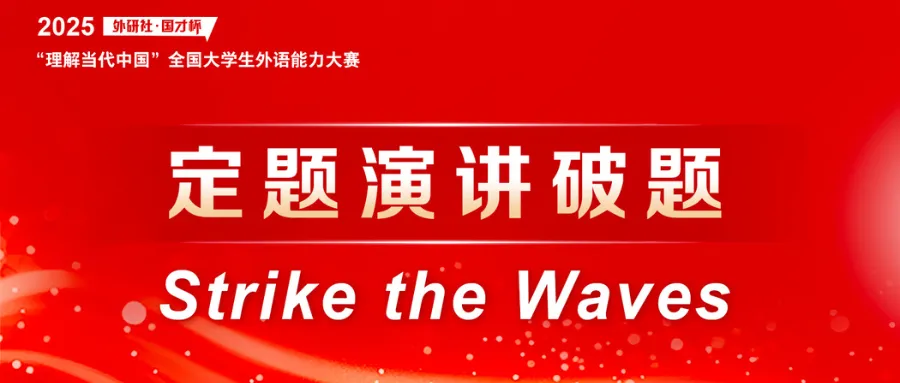 3. 演讲比赛:命题演讲,Strike the Waves。时间为3分钟,选手演讲结束后,评委就选手的演讲内容进行提问,选手回答时间为1分钟,要求用英语作答。