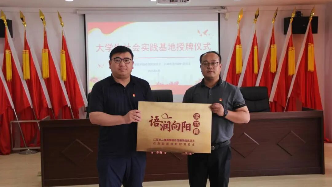 为进一步深化高校服务社会职能,加强校地共建,推动党建与乡村振兴、学生成长融合发展,近日,江苏第二师范学院外国语学院党总支书记余鑫率辅导员、学生党员一行来到石湫街道向阳村,与向阳村党总支开展党建结对共建暨大学生社会实践基地授牌仪式。