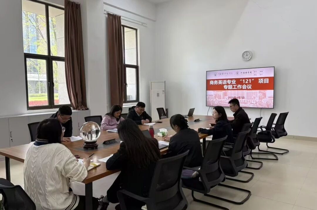 4月7日下午,我院于崇文楼1-103会议室召开商务英语专业“121”项目专题工作会议,全面复盘项目运行成效、精准研判现存问题、系统部署推进举措。学院班子全体成员、商务英语专业教研室主任和学业导师、班主任、辅导员、教务员等人员参加会议。党总支书记余鑫主持会议。