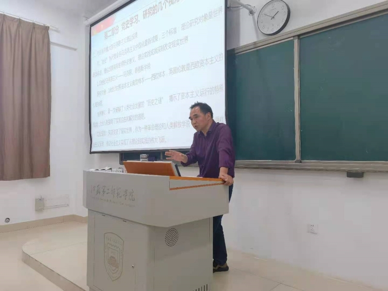 沈振东以“学习百年党史,砥砺初心使命”为主题,从党史学习的重要意义、党史学习的几个视角、百年党史的基本脉络、百年辉煌彰显党的特质四个方面展开宣讲,回顾了中国共产党的创建历史、走过的峥嵘岁月及百年发展取得的成绩,重点介绍了党史学习研究的五大视角,为各位党员师生做了一场生动精彩的宣讲。